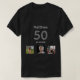 For a 50th birthday as a gift or for the party. A collage of 3 of your photos of himself friends, family, interest or pets. Personalize and add his name, age 50 and a date. Date of birth or the date of the birthday party. Gray and white colored text.