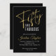 50th Birthday Elegant Script Black & Gold Minimal Invitation