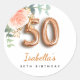 50th birthday floral rose gold eucalyptus monogram classic round sticker
