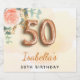For an elegant and feminine 50th birthday birthday party. A golden watercolored background. Decorated with a rose gold and blush pink watercolored rose flower, floral, green eucalyptus leaves, sprigs, greenery and faux gold sprigs. Personalize and a name. Black and golden letters. The name is written with a modern hand lettered style script. Number 50 is written with a golden balloon style font.