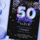 50th Birthday for Him Blue Fireworks Foil Balloon Invitation