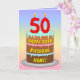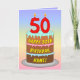 50th Birthday — Fun Cake & Candles, w/ Custom Name Card