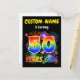 The front of this fun and lively birthday party invitation postcard design has an editable name, an exciting bursting celebratory fireworks inspired pattern, and the message "50 YEARS OLD!" having a colorful rainbow spectrum inspired gradient pattern. The back features a personalized message with information about the party, such as when and where it is being held. Invitation postcards like this might be sent to potential guests of a party being held to celebrate the birthday of somebody who is turning 50 years old. [~Z0000452]