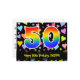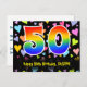 The front of this loving, exciting, and colorful birthday-themed postcard design features a large number "50" having a rainbow spectrum gradient inspired pattern. It also features the message "Happy 50th Birthday,", and a customizable recipient name. The front additionally features a vibrant and colorful background featuring a pattern of loving heart shapes. The back features an editable birthday greeting message, or could perhaps be cleared and left blank if a message is to be written by hand instead. A personalized birthday postcard like this might be a fun way to acknowledge somebody’s fiftieth birthday. Postcards like this might also be used to invite guests to a birthday celebration being held for somebody who is turning 50 years old. [~Z0000448]