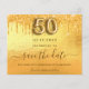 50th birthday gold drips save the date card
