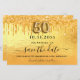 A girly and trendy Save the Date card for a 50th birthday party. A modern faux gold metallic looking background decorated with faux glitter drips, paint dripping look. Personalize and add a date and name. The text: Save the Date is written with a large trendy hand lettered style script. Number 50 with a balloon style font.