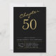 50th Birthday Gold Modern Script Black Invitation
