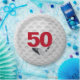 Close-up of white golf ball pattern with a golf club for 50th birthday party.