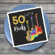 50 Rocks 50th birthday party paper plates with three cool watercolor guitar designs on black background. An electric guitar with Fire flame pattern and red pick guard, a multicolored semi acoustic guitar and a psychedelic classic acoustic guitar art illustration with personalized black and gold modern cool typography. This easy to use template to change the age creates the perfect party decor to celebrate fifty in rock n roll style and is ideal for a guitarist, musician and music lovers. Any guitar player will tell you that you can never have too many guitars. This cool modern musical instrument design celebrates the music energy of this wonderful musical instrument and is the perfect way to rock a fiftieth birthday celebration. Original artwork by artist Catherine Sweetman