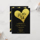 50th Birthday Hello 50 Black | Faux Gold Heart Invitation