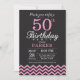 Plain white envelopes are included with paper invitations and will come to fit the invitation size you select. If you don’t need the envelopes, you may choose to not receive them by selecting the dropdown below "Envelopes" and choosing "None." If you’d like to have a design on your envelopes, you can browse all of these available envelopes to find the design that complements your 50th Birthday Invitation Black And Pink Chevron.
