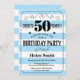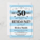 50th Birthday Invitation Blue and White Stripes