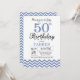 50th Birthday Invitation with Blue Chevron. Black and White. Adult Birthday. Man or Women Bday Invite. For further customization, please click the "Customize it" button and use our design tool to modify this template.
