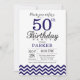 Plain white envelopes are included with paper invitations and will come to fit the invitation size you select. If you don’t need the envelopes, you may choose to not receive them by selecting the dropdown below "Envelopes" and choosing "None." If you’d like to have a design on your envelopes, you can browse all of these available envelopes to find the design that complements your 50th Birthday Invitation Navy Blue Chevron.