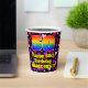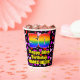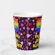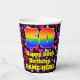 This fun and colorful birthday themed paper cup design features a large number “50” with a rainbow spectrum gradient inspired pattern, along with the message “Happy 50th Birthday,”, and a custom name. The background features a pattern of heart shapes with colors like pink, purple, and red. Cheerful, joyful paper cups like this might be fun to use at a birthday celebration/party being held in celebration of somebody’s fiftieth birthday. [~Z0000548]