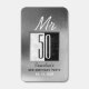 Simple, modern, elegant, metallic silver black and white, personalized 50th Birthday Party matchboxes. You can easily change the age number!