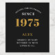 1975 Vintage 50th Birthday Black & Gold Elegant Wine Label. Celebrate your milestone with our exclusive birthday wine label. The meticulously designed label with stunning black and gold hues effortlessly enhances the visual appeal of your favorite wine. The year prominently featured on the label, adds a nostalgic throwback to the day of your birth. Using premium quality material, this label ensures longevity, further cementing its place as a memorable keepsake from your special Birthday celebration. In addition, enjoy the benefit of personalizing this label with your name, adding a unique and intimate touch to your celebration. • Stunning Black & Gold Design: Infuses an aura of sophistication & elegance to any wine bottle, making it a perfect centerpiece for your celebration
