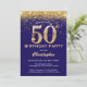 50th Birthday Navy Blue and Gold Glitter Confetti Invitation