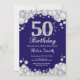 50th Birthday Navy Blue and Silver Diamond Invitation