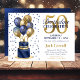 Having your 50th Birthday Navy Blue Balloon Cake Invitation match the theme of your party is a great detail that your guests will appreciate. The thoughtfulness of a consistent party theme is often appreciated and can show your guests that you can host a cohesive event.