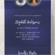 A navy blue background. The blue color is uneven. Personalize and add a photo, name, party details, RSVP date, return address and name. Number 50 is written with a balloon style font in faux silver.