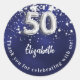 A sticker for a 50th birthday celebration. A navy blue background color with faux silver stars. The blue color is uneven. Add your name, text. Text: Thank you for celebrating with me!