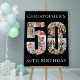 50th Birthday Party easel sign - perfect to welcome guests, provide a photo prop and create a fun "do you remember when .. ?" talking point. The photo template is set up for you to upload your pictures to form the number 50. The template uses a mix of square, portrait and landscape formats to help you find the best spot for your favorite pics. You can also personalize the design with the name of the person turning 50 years old.