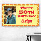 Celebrate her special day with this 50th Birthday Orange Flower Photo Banner. Personalize it with her photo, name, and age. This colorful floral banner features orange blossoms and a bold yellow background with bright red text.