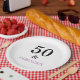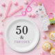 Celebrating fabulous 50th birthday garden party plate design in pink with black text. To view more products click the store link.