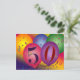 Easy to customize 50th birthday party postcard invitations. Colorful balloons with rainbow colored background and confetti decorations.