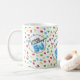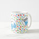 Custom Mug for 50 Year Old, Add a Name to this Colorful Confetti look 50th B-day mug. A Unique Birthday designed gift with blue cool, grunge fifty text. Personalized Blue and Multicolored themed Birthdays with a custom flair for a Big 50th Year Celebration for the 50 yr old.