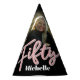 Personalized custom photo and name birthday party hat. Ideal for a special fiftieth birthday party celebration. Glitter effect pink and silver fifty and 50 text design on black. Add your own photo and birthday girls name. Original art and design by Sarah Trett for www.mylittleeden.com