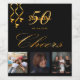 A bottle label for a glamorous 50th birthday party. Personalize and add 3 of your own photos, a name, age 50 and a date. Date of birth or the date of the party. Golden colored letters. The word: Cheers, in faux gold written with a trendy hand lettered style script. Elegant, classic chic black background color, decorated with faux gold party streamers.