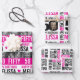 Simple hot pink, black and white 50th birthday wrapping. Bright graphic birthday milestone wrapping paper with photo placeholders for your own photos customize with your own name. Other matching 50th items are available. Unique design by www.mylittleeden.com