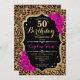 50th Birthday - Pink Roses Leopard Print Invitation