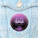 Glamorous button for a 50th birthday with elegant and modern black and pink, purple gradient, ombre backdrop. With a faux gold frame, and ultra violet and purple colored watercolored flowers. Templates for name, age and date, white and purple colored letters. Perfect as a keepsake or as a save the date reminder for your guests.