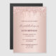 A modern, stylish and glamorous magnetic invitation for a girly and feminine 50th birthday party. A faux rose gold metallic looking background with an elegant faux rose gold glitter drip, paint drip look. The name is written with a modern dark rose gold colored hand lettered style script. Templates for your party details. Perfect as a save the date reminder for your guests!