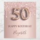 Elegant, classic, glamorous and girly for a 50th birthday party. Rose gold and blush pink, gradient background. Decorated with rose gold, pink faux glitter drips, paint dripping look. Personalize and add a name. With the text: Happy Birthday. The text is written with a modern dark rose colored hand lettered style script. Number 50 is written with a balloon style font.