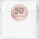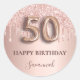 Elegant, classic, glamorous and girly for a 50th birthday party. Rose gold and blush pink, gradient background. Decorated with rose gold, pink drips, paint dripping look. Personalize and add a name. With the text: Happy Birthday. The text is written with a modern dark rose colored hand lettered style script. Number 50 is written with a balloon style font.