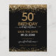 Elegant Faux gold glitter with shimmering confetti highlights on the top and bottom border. All text is adjustable and easy to change for your own party needs. Great elegant 50th birthday template design.