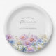 Perfect table decor for a September birthday party. Aster is the birth flower for that month. It forms a pretty watercolor bottom border on this floral personalized paper plate. The birthday guest of honor's name, age and birthdate are placed above it using elegant calligraphy and typography. All text is editable.