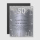 A modern, stylish and glamorous invitation magnet for a 50th birthday party. A faux silver looking background, decorated with glitter dust. Personalize and add your name and party details. Number 50 is written with a balloon style font, script.