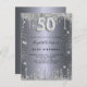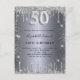 A modern, stylish and glamorous invitation for a 50th birthday party. A faux silver looking background, decorated with glitter dust. Personalize and add your name nad party details. Number 50 is written with a balloon style font, script.