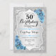 50th Birthday - Silver Stripes Icy Blue Roses Invitation