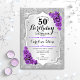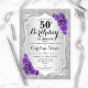 50th Birthday - Silver Stripes Purple Roses Invitation