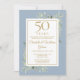 50th Gold Anniversary Dusty Blue Greenery Leaves Invitation