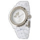 Personalized 50th wedding anniversary white watch with gold heart balloons.