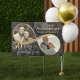Celebrate a love that knows no bounds with our Wedding Anniversary Infinity Love Personalized Then & Now Anniversary Photo Collage Yard Sign. The personalized then and now faux gold infinity design and photo collage are thoughtfully designed in the shape of an infinity symbol. Showcases your then and now photo within the infinity design with a stunning photo collage background with a black transparent overlay. Perfect for honoring years of togetherness. Whether you're celebrating any milestone anniversary, this personalized sign is a heartfelt way to reflect on your journey. Upload your cherished photos, and customize them with names, anniversary wedding year, and number of years married. Perfect as a welcome sign, or keepsake decoration, this elegant design creates a beautiful focal point for your anniversary wedding celebration. Design by Moodthology Papery