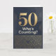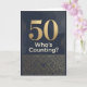A 50th birthday card in dark shades of black and gold. A large oversized 50 with the words "who's counting"? The inside message reads a sweet message. No need to count. Personalize the message for your loved one turning 50.