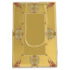 Looking for the right 50th or 1st wedding anniversary gift bag? Then perhaps a beautiful, golden ochre colored, ornate repeat and gemstone graphic will be just the thing to give them BOTH!